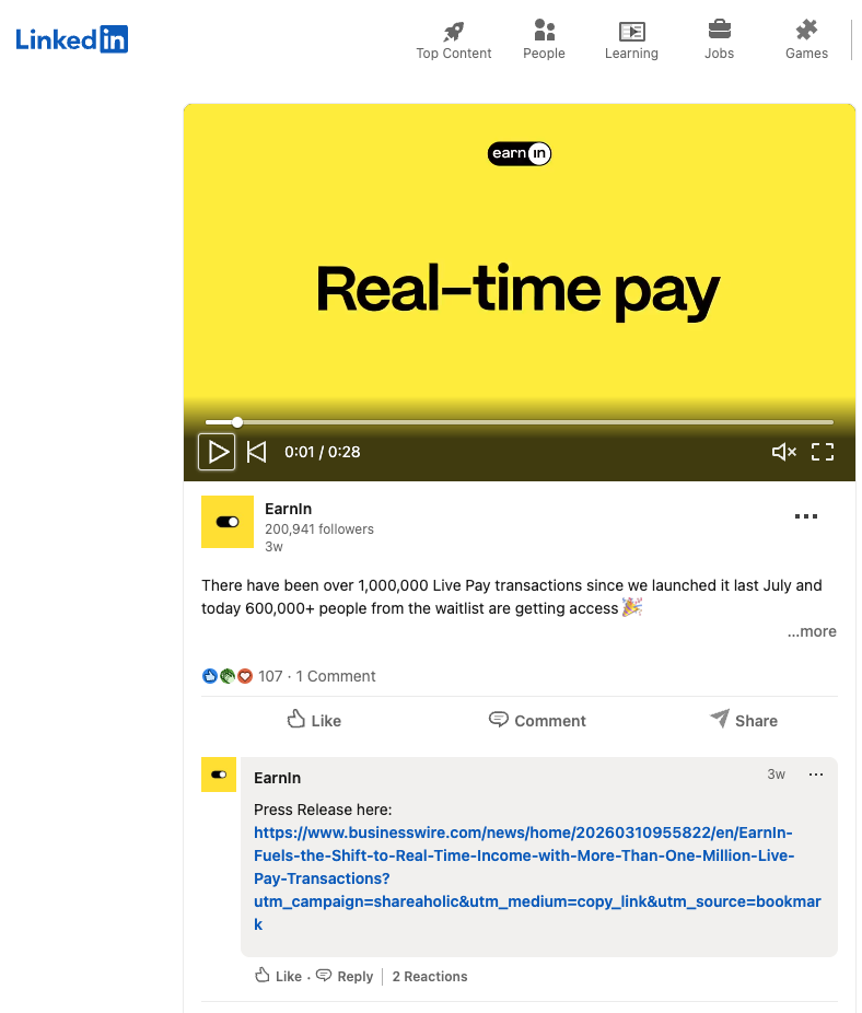 By combining compelling storytelling with proof points at scale, the campaign successfully repositioned Live Pay from a product launch into a category-defining moment—demonstrating that real-time access to earnings is no longer a novelty, but a new standard.