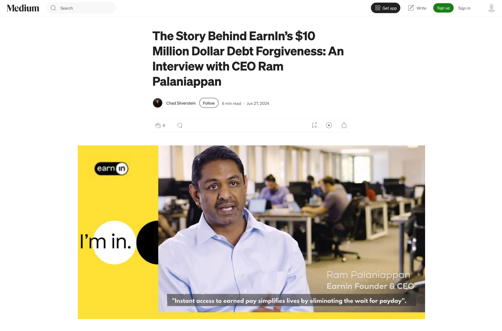 Community SupportShort writeup here EarnIn: The Story Behind EarnIn’s $10 Million Dollar Debt Forgiveness: An Interview with CEO Ram Palaniappan EarnIn: $13.9 million in medical debt erased for nearly 10,000 Bexar County residents EarnIn: EarnIn abolished $22 million in medical debt in Phoenix, Las Vegas and San Antonio